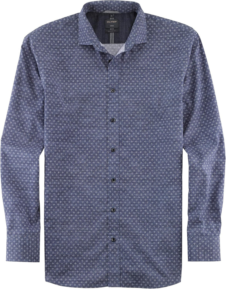 OLYMP Herren Freizeithemd Langarm Casual,Digitaldruck,modern fit,Kent-Kragen S Marine 18, S Marine 1