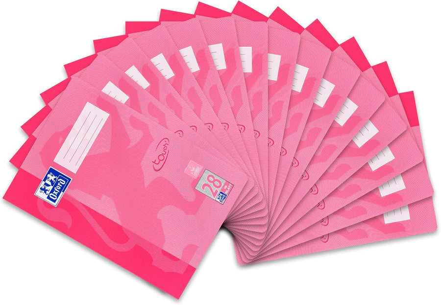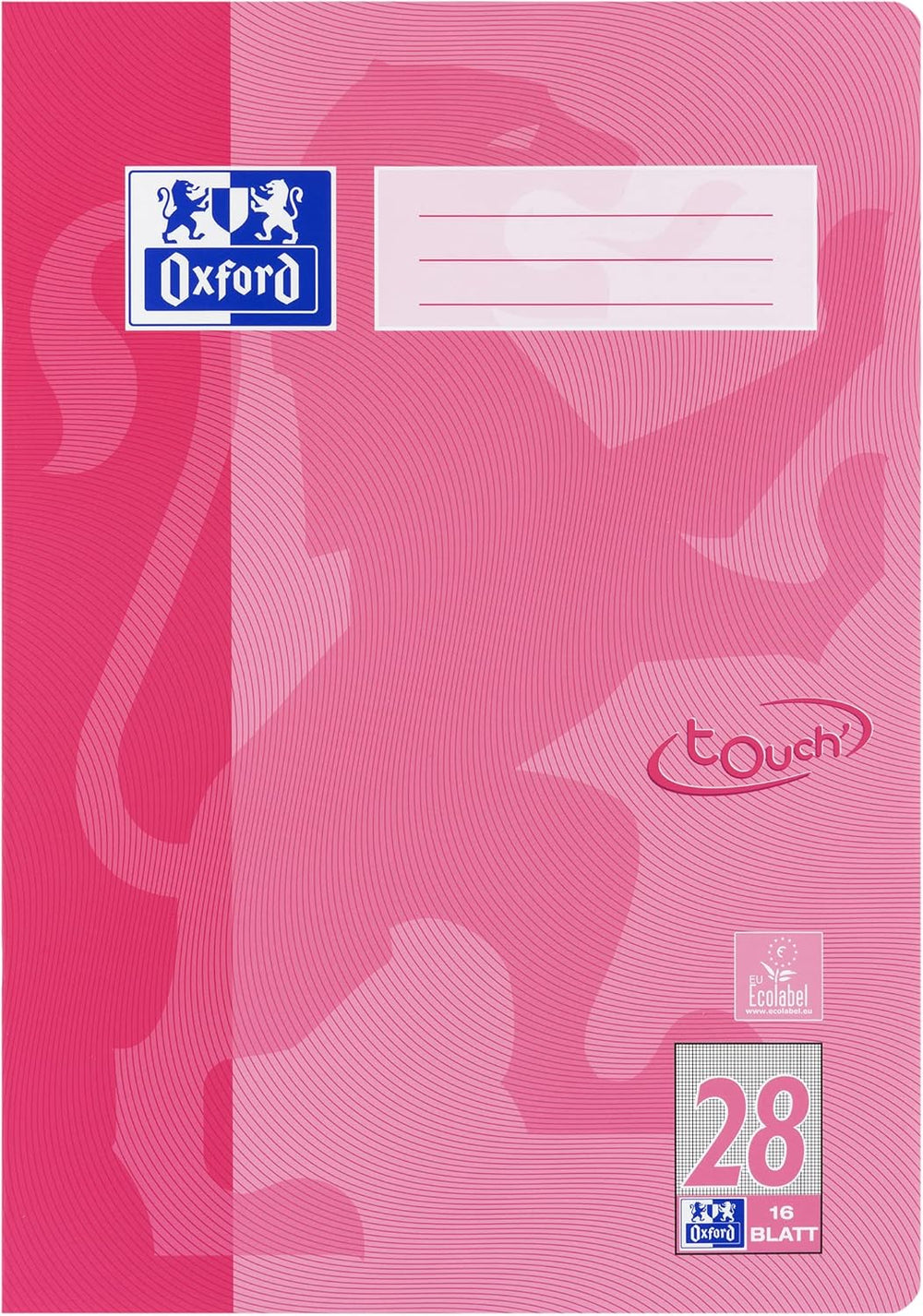 Oxford Schulheft A4, Touch, 16 Blatt, Lineatur 28, kariert, 15 Stück rosa Lineatur 28 - kariert mit