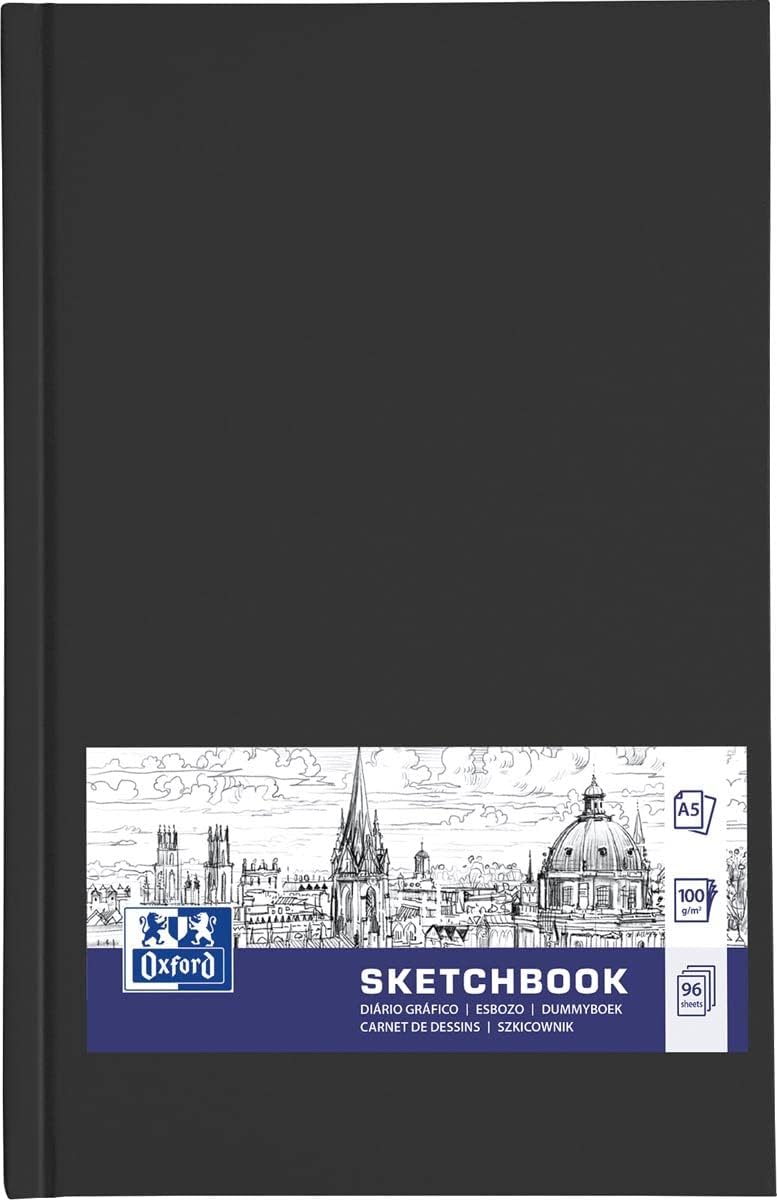 Oxford SKIZZENBUCH A5 Hardcover Fallgebunden Genäht 96 Blatt 100g Schwarz - 5er Pack 5er Pack Single