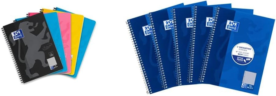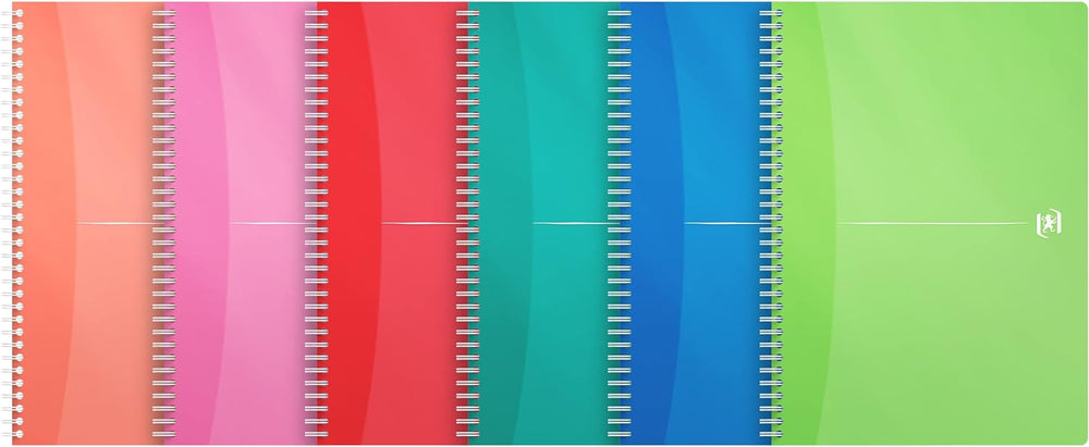 Oxford Spiral-Notizbuch A5, liniert, 180 Seiten, 4 aus 6 Farben, 5 Stück A5, liniert Spiralbuch, A5,