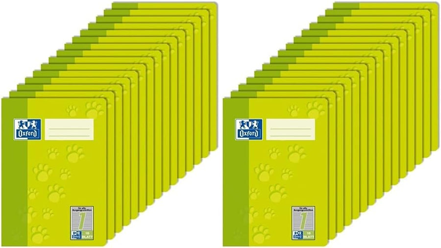 Oxford Schulheft A5, Lineatur 1, 16 Blatt, grün mit Tatzen, 15 Stück (Packung mit 2) 16 Blatt (Packu