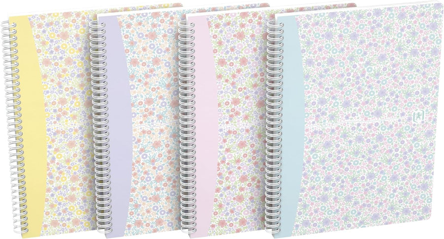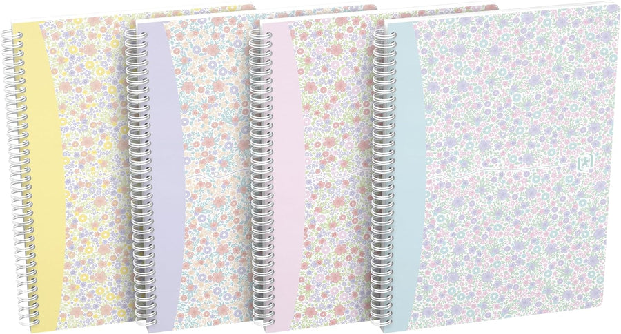 Oxford Spiralbuch B5, kariert, 60 Blatt, Floral, 4 Blumen-Motive, 5 Stück, kariert