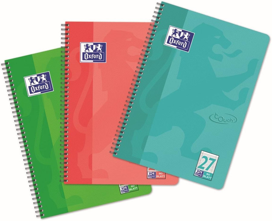 Oxford Touch Collegeblock B5 kariert, Rand links, 80 Blatt, sortiert, 5 Stück & Collegeblock A5 kari