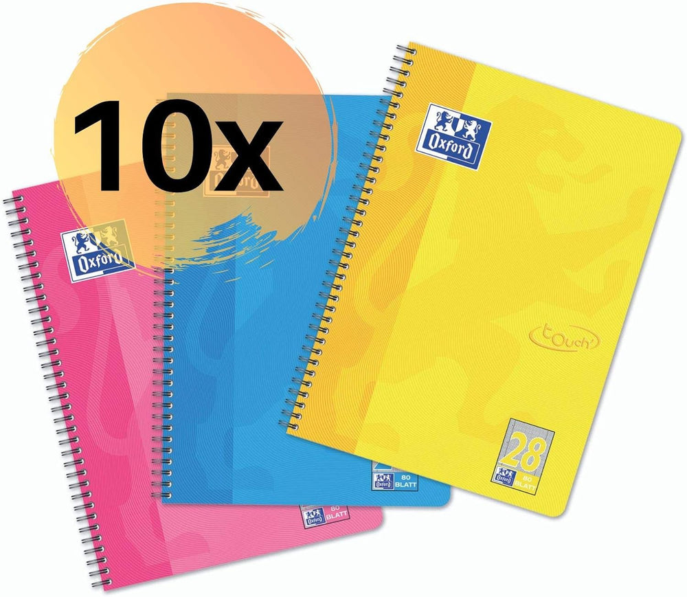 Oxford Touch Collegeblock A4 liniert mit Doppelrand, 80 Blatt, sortiert, 10 Stück, liniert