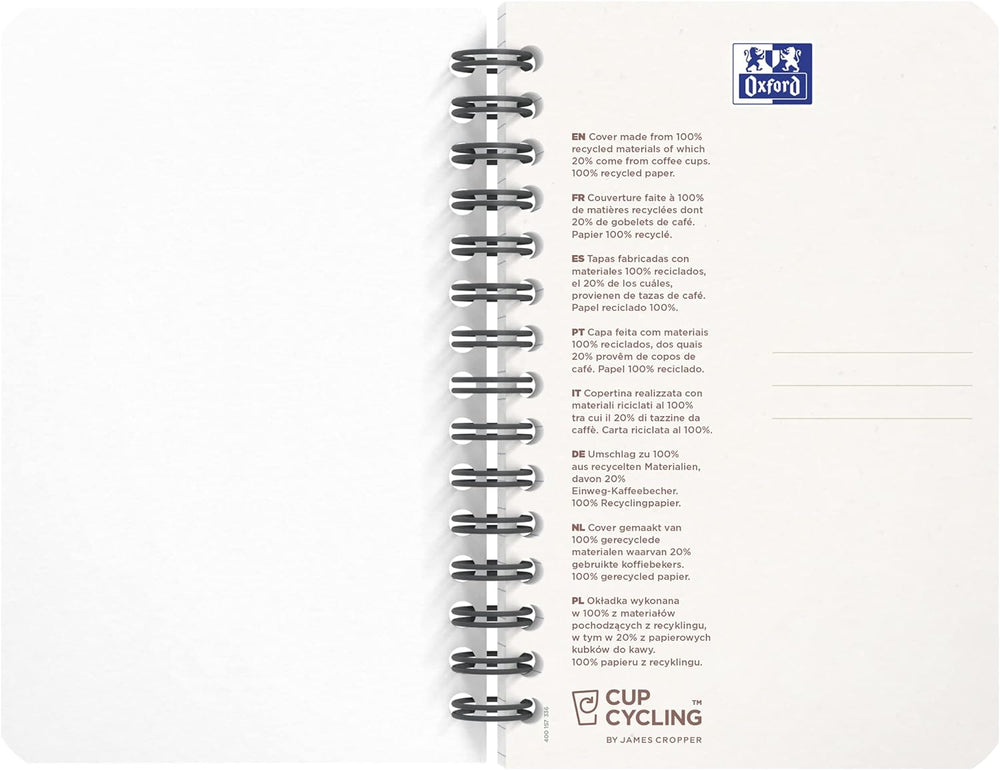 Oxford Spiral-Notizbuch 9x14cm kariert, 180 Seiten, My Rec'Up, aus recycelten Papp-Bechern, 6 Farben