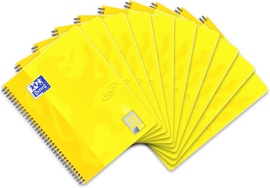 Oxford Touch Collegeblock A4 kariert mit Doppelrand, 80 Blatt, gelb, 10 Stück