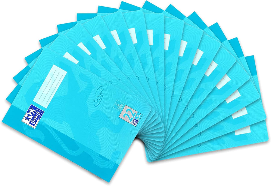 Oxford Schulheft A4, Touch, 16 Blatt, Lineatur 22, kariert, 15 Stück hellblau L 22 - kariert ohne Ra