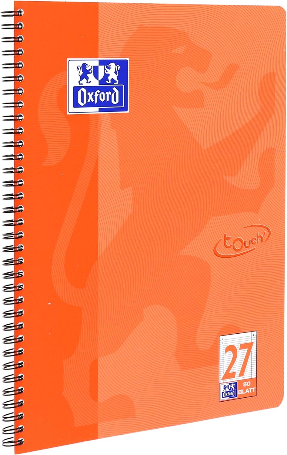 Oxford Touch Collegeblock A4 liniert mit Doppelrand, 80 Blatt, koralle, 10 Stück