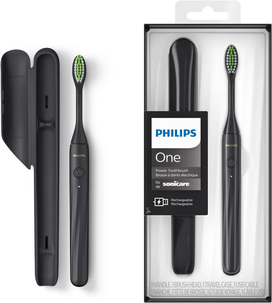 Philips One elektrische Zahnbürste mit USB-Ladung, Mattschwarz (Modell HY1200/26), HY1200/26