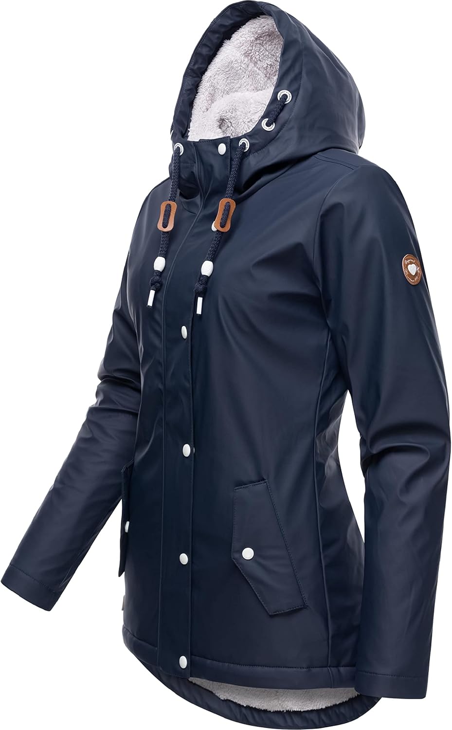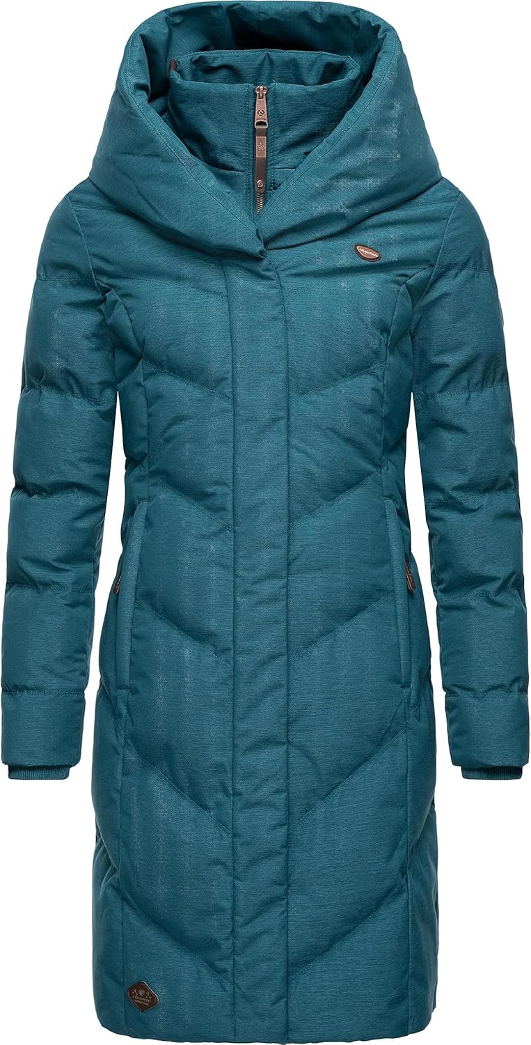 Ragwear Damen wasserdichter Regenmantel Wintermantel warm gefüttert Steppmantel lang mit Kapuze Teel