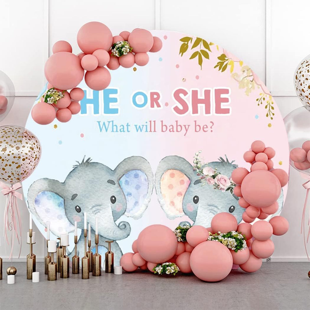 Renaiss 2x2m Rosa Blau Elefant Runde Kulisse Er oder Sie Geschlecht Reveal Kreis Hintergrund Abdecku