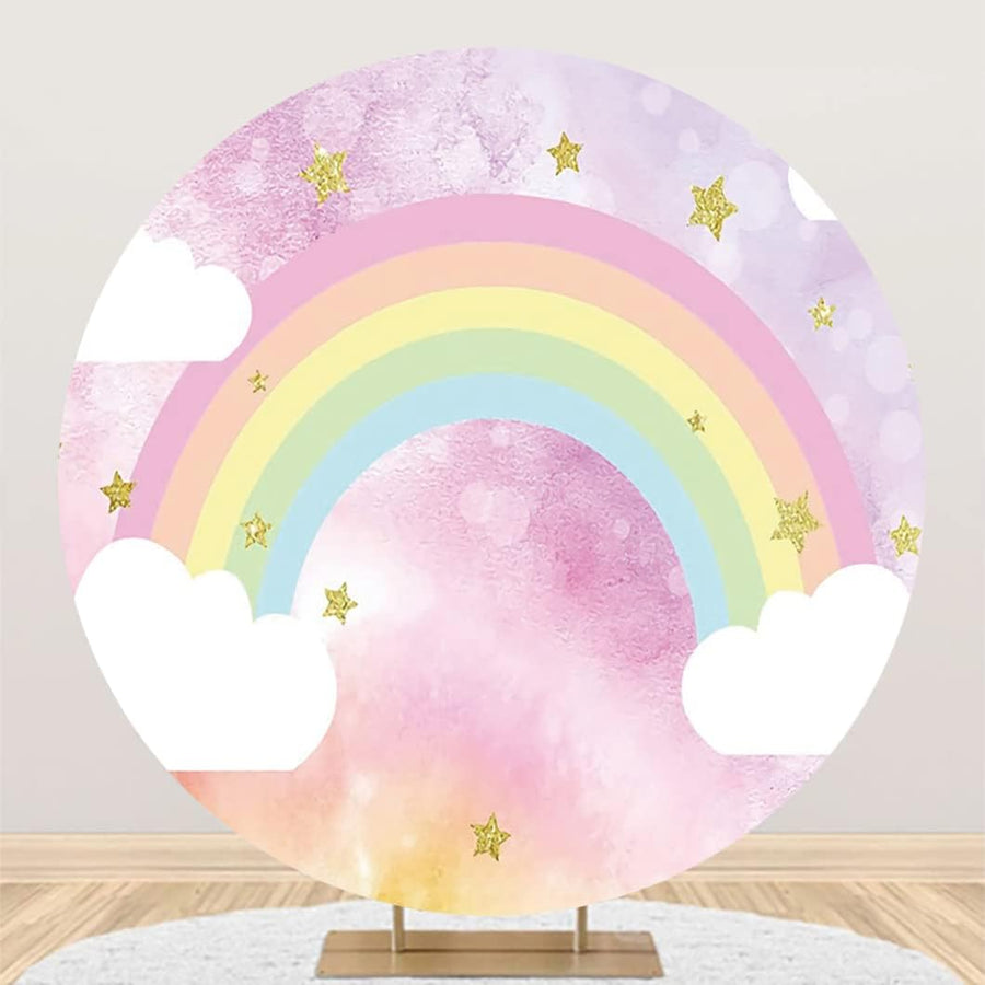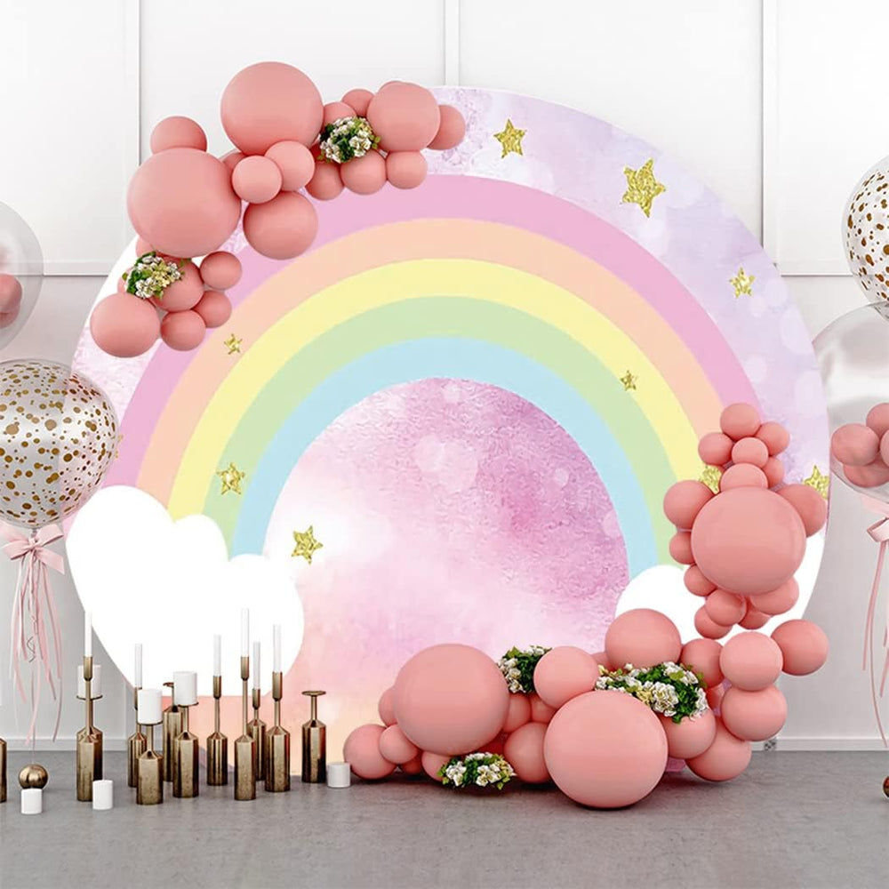 Renaiss 2x2m Regenbogen Runde Kulisse Rosa Himmel Wolke Glitter Sterne Fotografie Hintergrund Kinder