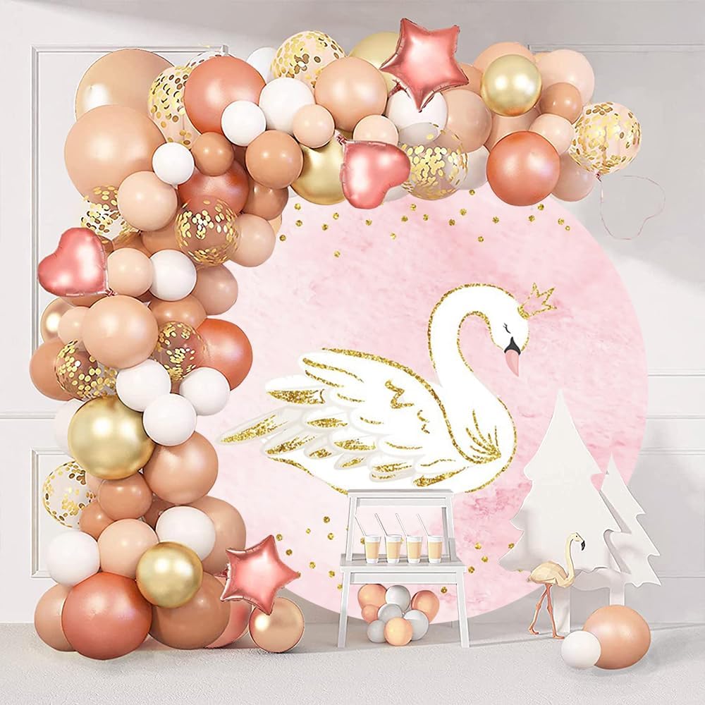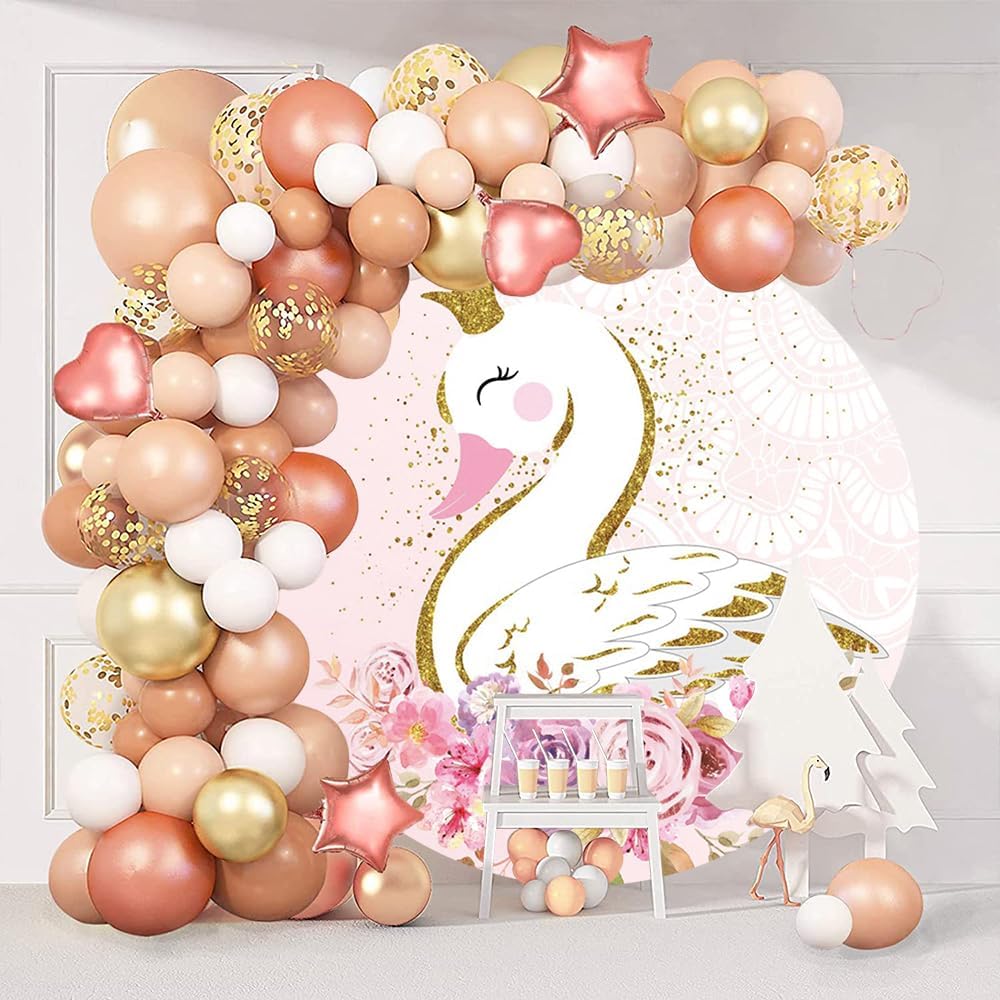 Renaiss 2m Schwan Runde Kulisse Floral Rosa Gold Polyester Fotografie Hintergrund Baby Dusche Mädche