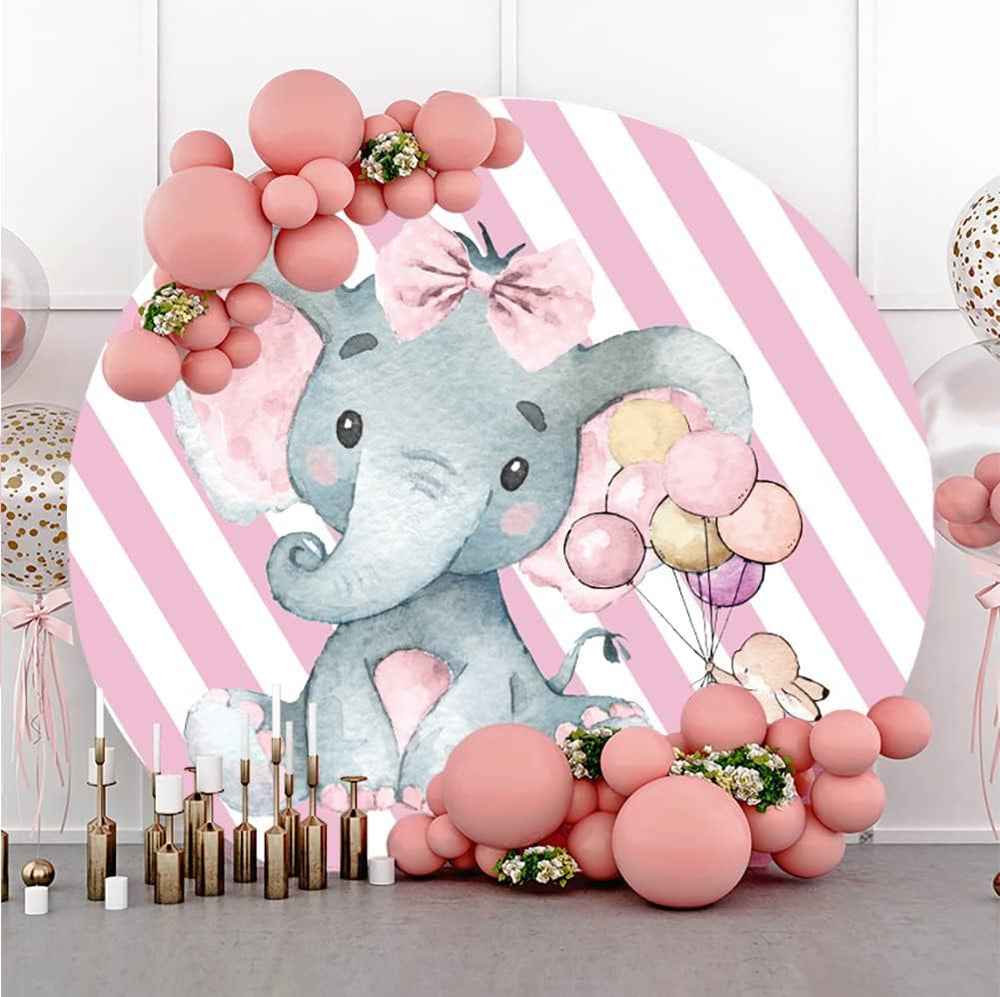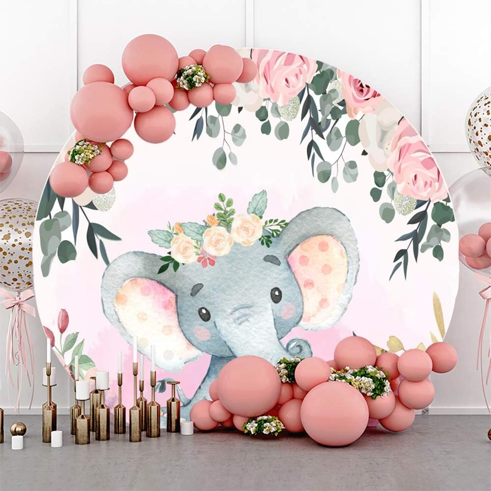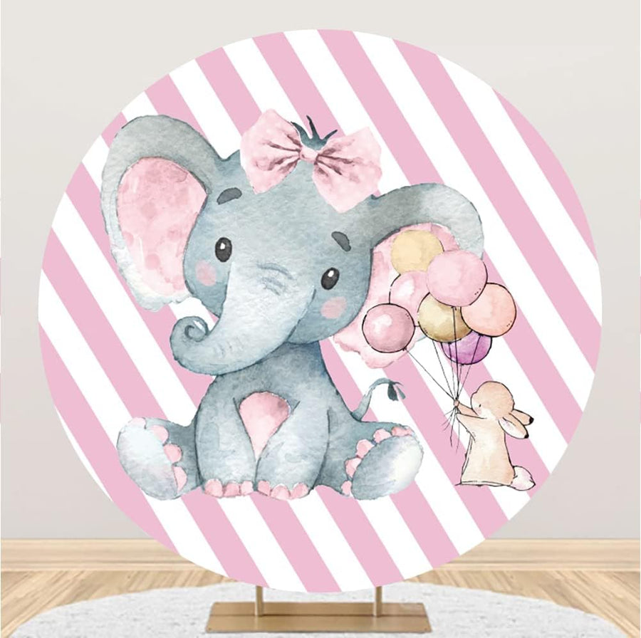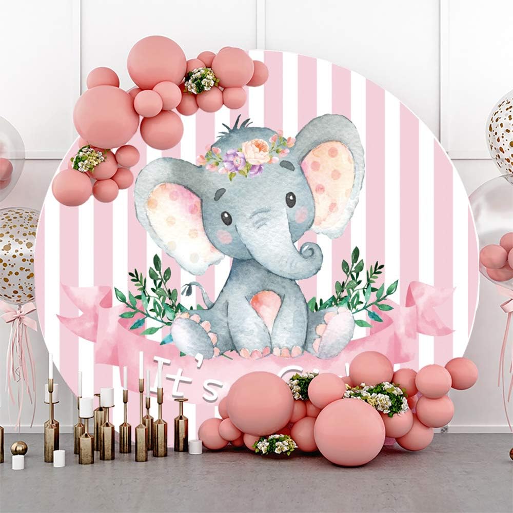 Renaiss 2x2m Blume Elefant Runde Kulisse Es ist EIN Mädchen Rosa Streifen Polyester Stoff Fotografie