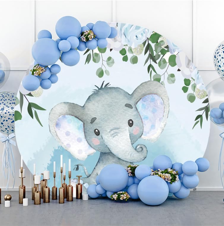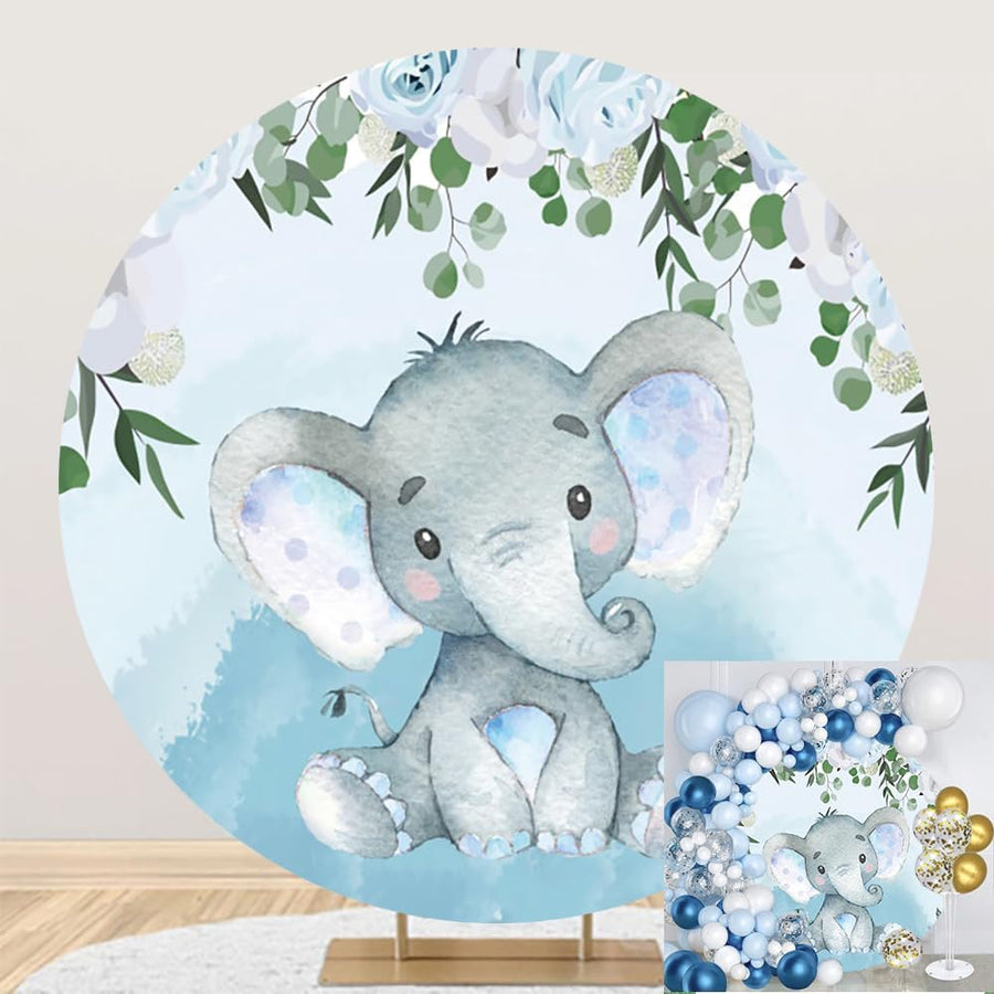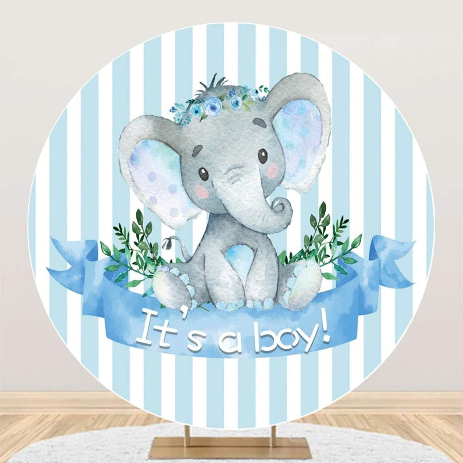 Renaiss 2x2m Blume Elefant Runder Backdrop Es ist EIN Junge Blaue Streifen Polyester Stoff Fotografi