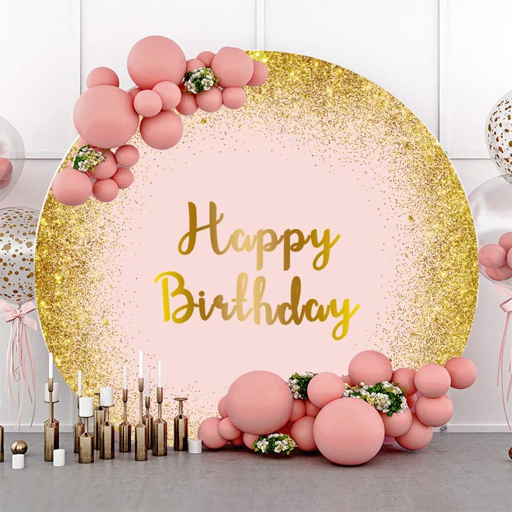 Renaiss 2x2m Goldener Glitzer rosa runder Kulisse Alles Gute zum Geburtstag Fotografie Hintergrund F