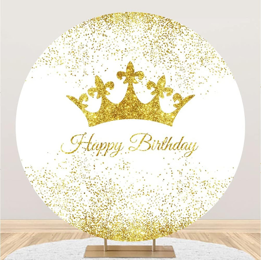 Renaiss 2x2m Alles Gute zum Geburtstag Rundes Kulisse Goldene Glitzer Krone Polyester Hintergrund Ki