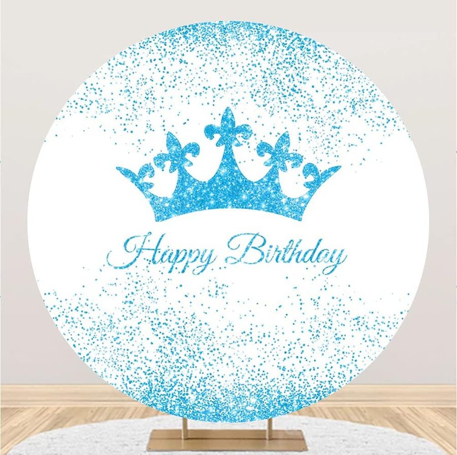 Renaiss 2x2m Alles Gute zum Geburtstag Rundes Kulisse Blau Glitter Crown Fotografie Hintergrund Kind