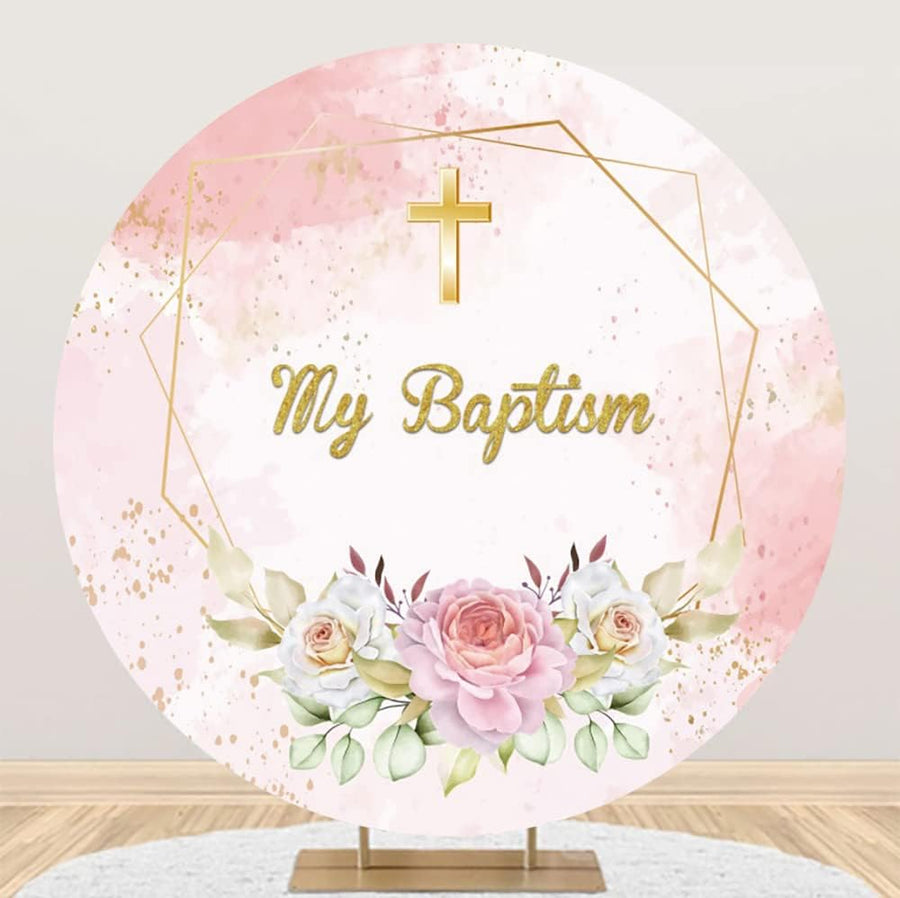 Renaiss 2x2m Meine Taufe Runder Backdrop für Mädchen Rosa Blumen Erstkommunion Fotografie Hintergrun
