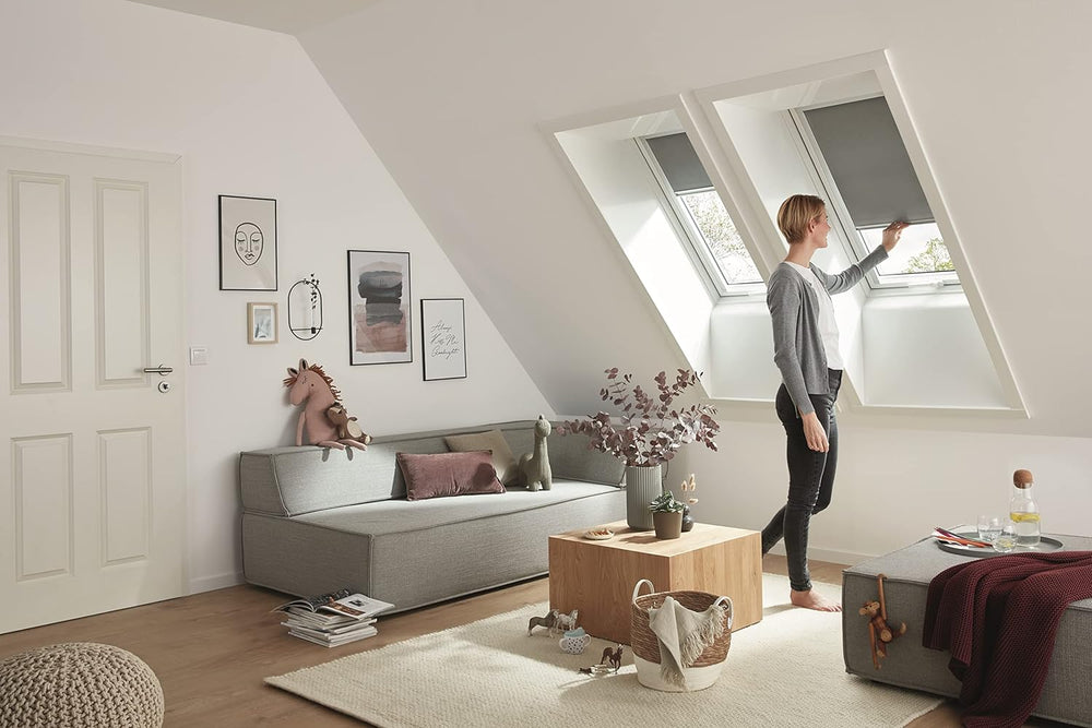 Original Roto Rollo Exclusiv ZRE Tageslichtrollo Führungsschiene Silber für Roto Dachfenster der Bau