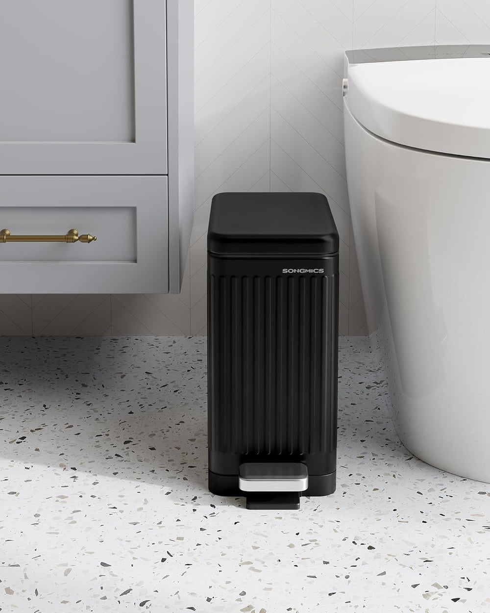 SONGMICS Kosmetikeimer, 5 Liter, Mülleimer Bad, mit Deckel, Tretmülleimer, Abfalleimer klein, schmal