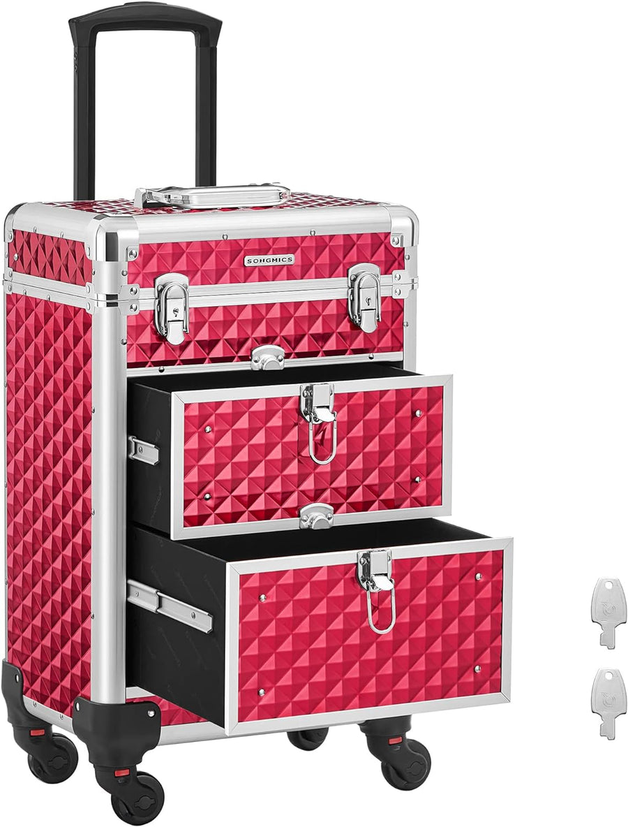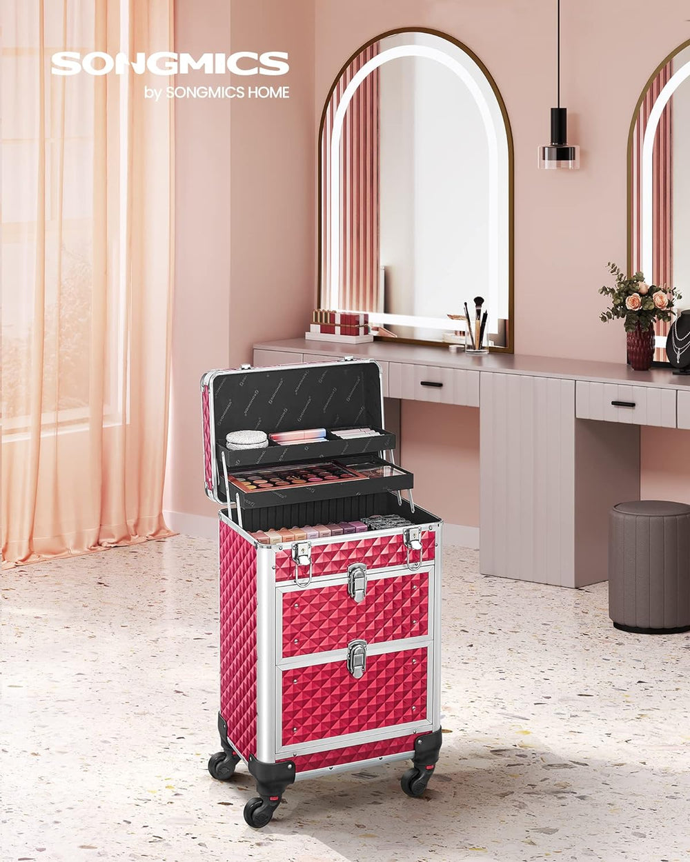 SONGMICS Kosmetikkoffer Trolley, Professionell Schminkkoffer, Friseurkoffer mit 4 Abnehmbaren Univer
