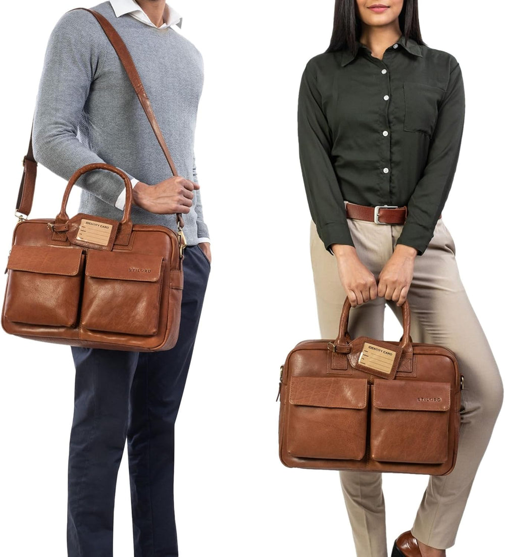 STILORD 'Challenger' Grosse Leder Umhängetasche Herren Damen 15,6 Zoll Laptoptasche Lehrertasche Akt