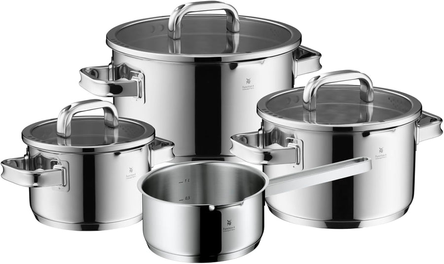 WMF Function 4 Advanced Topfset Induktion 4-teilig, Glasdeckel mit 4 Abgiessfunktionen, Cromargan Ed