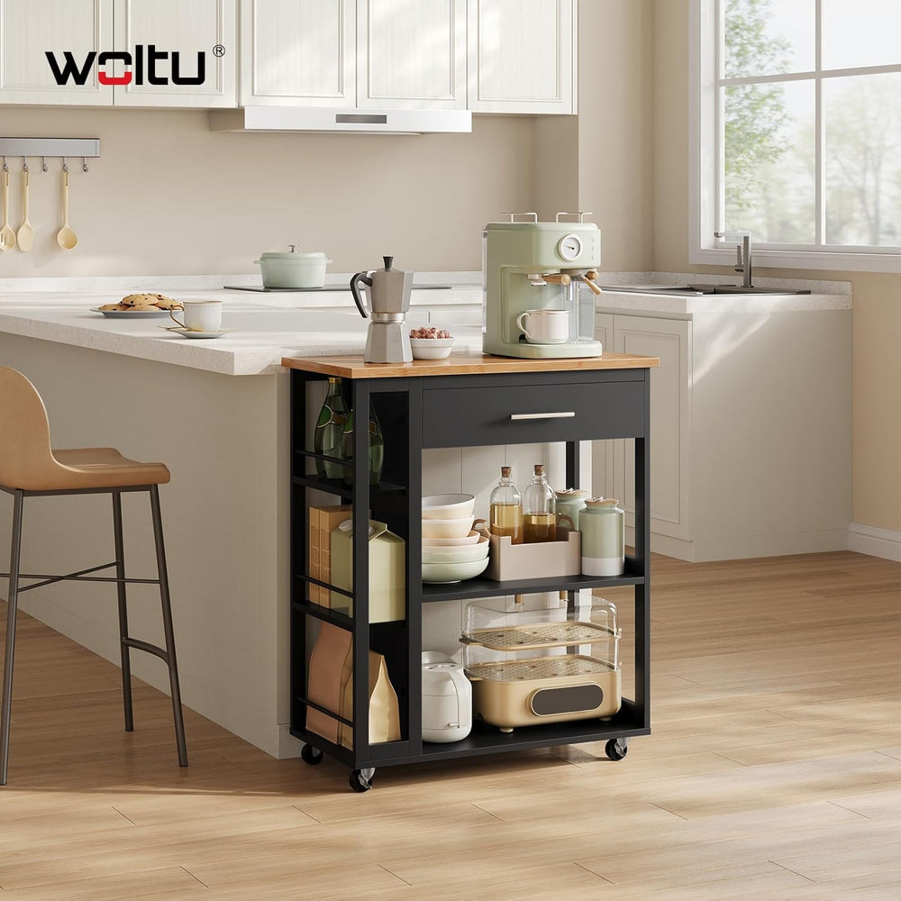 WOLTU Küchenwagen mit Arbeitsplatte, Servierwagen mit Rollen, Rollwagen mit Schublade offenen Ablage
