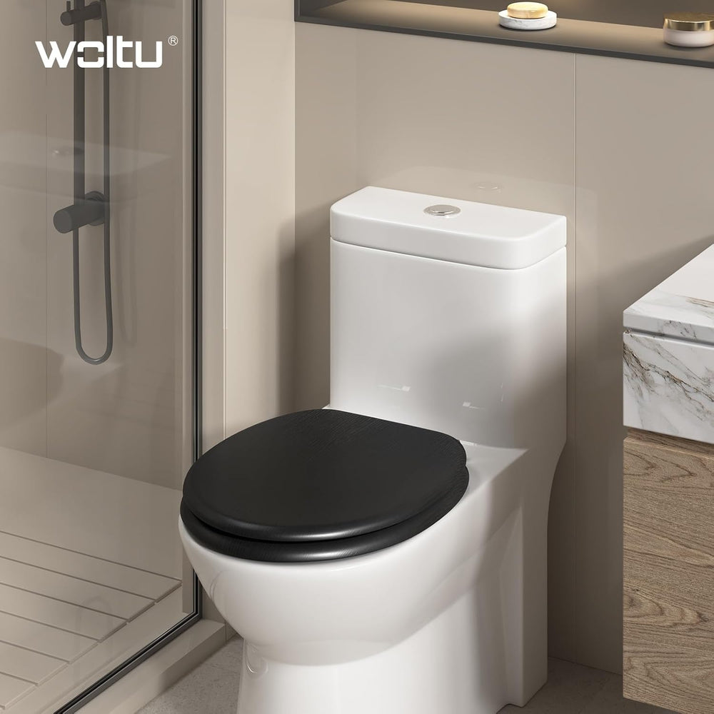 WOLTU Premium WC-Sitz Toilettensitz mit Absenkautomatik, MDF Holzkern, Softclose Scharnier, Desgin D