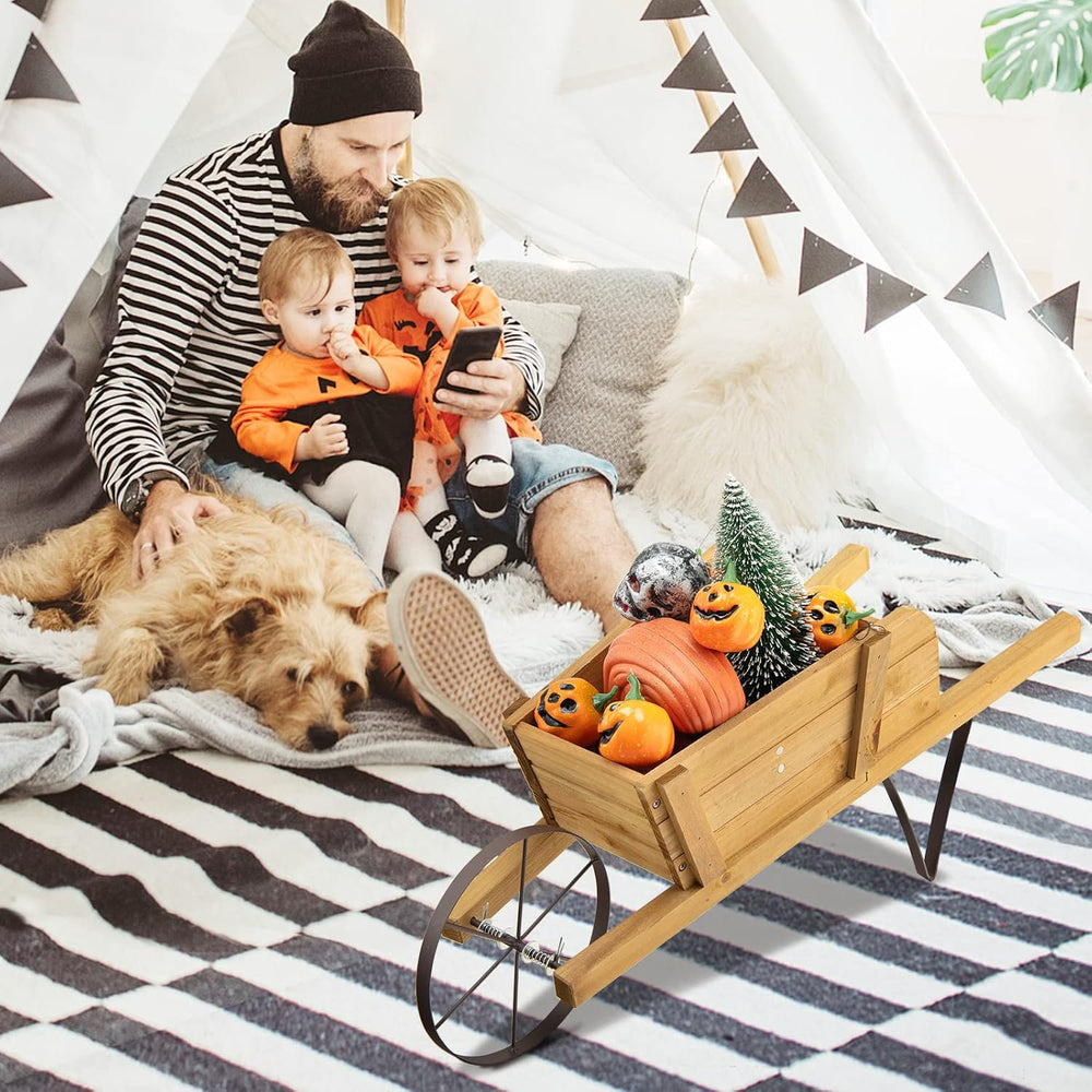 COSTWAY Blumenwagen Holz, Pflanzwagen mit Rädern und Griffen, Blumenkarre mit Abflussloch, Pflanztop