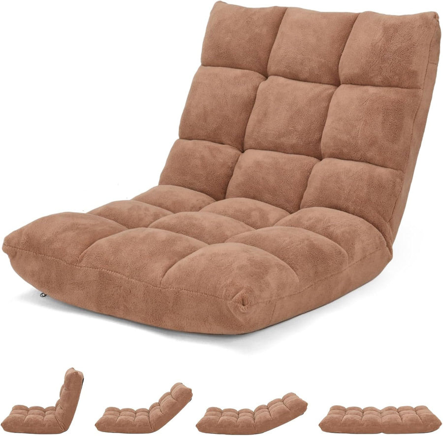 COSTWAY Bodenstuhl mit Verstellbarer Rückenlehne, Bodensessel gepolstert, Bodenkissen faltbar, Medit