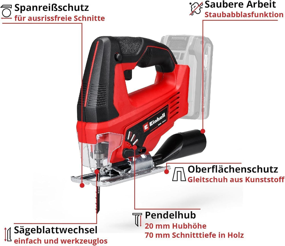 Einhell Akku-Stichsäge TE-JS 18 Li Power X-Change (Li-Ion, 18 V, max. 80 mm Schnitttiefe, 4-Stufen P