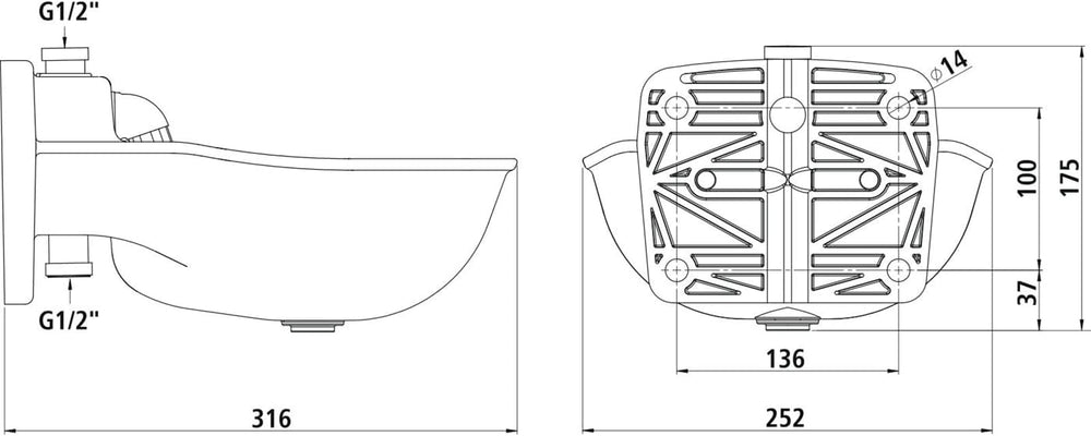 Kerbl Tränkebecken K75 - 1/2 mit Rohrventil - 221875, Tränkebecken K75 - 1/2