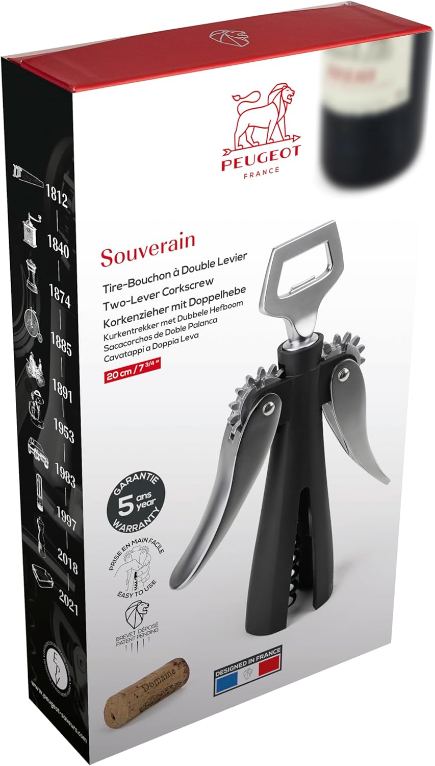 Peugeot Saveurs de Vins SOUVERAIN Korkenzieher 20 cm mit Kapselheber, Silikon, Zamac, 18 cm klassisc