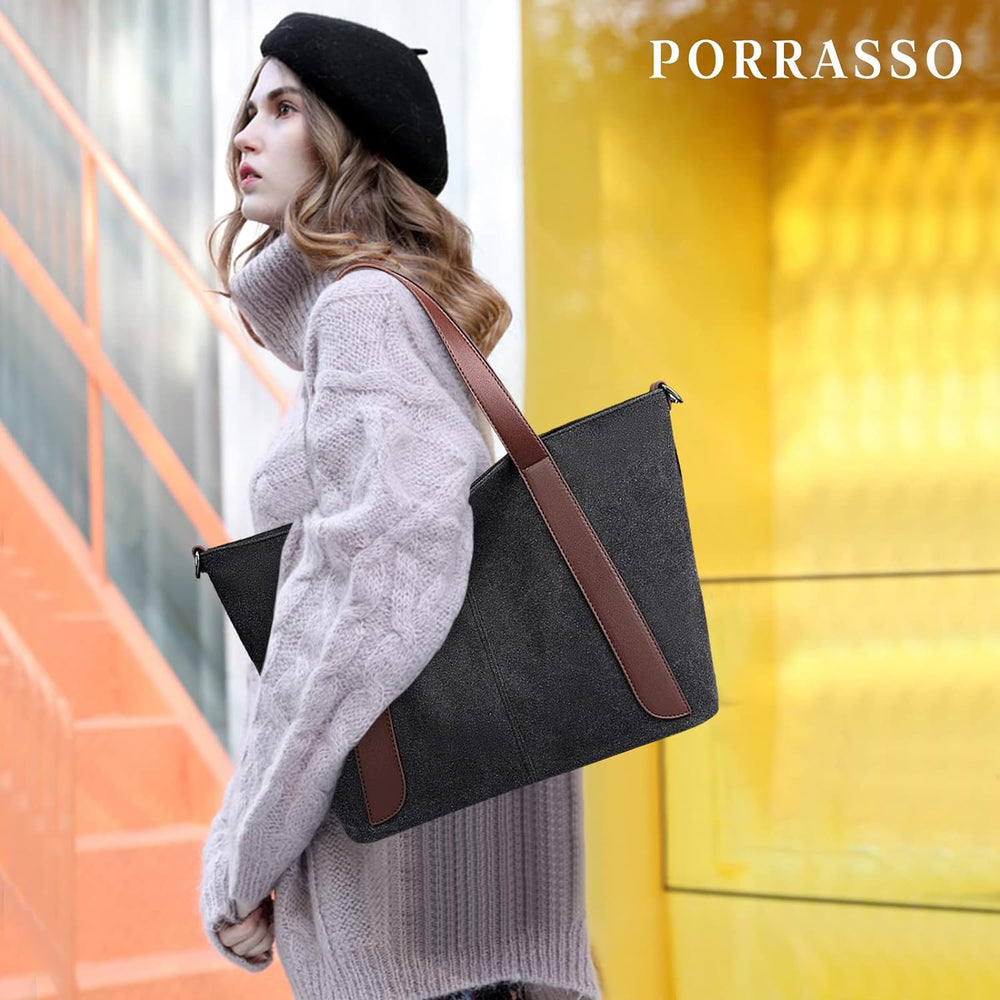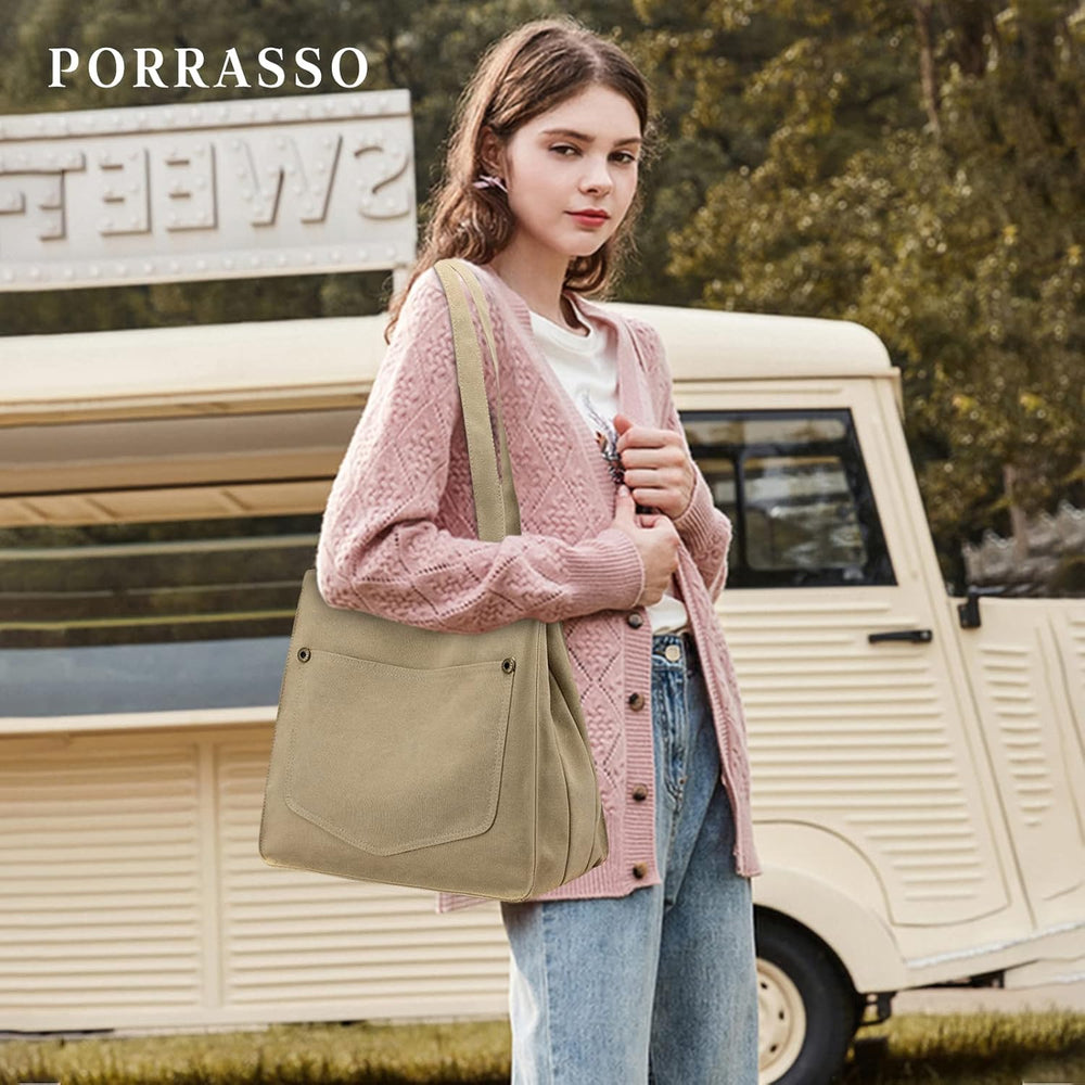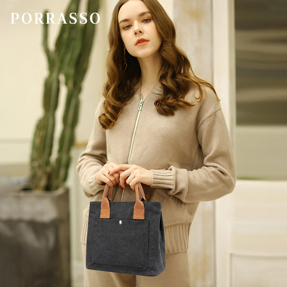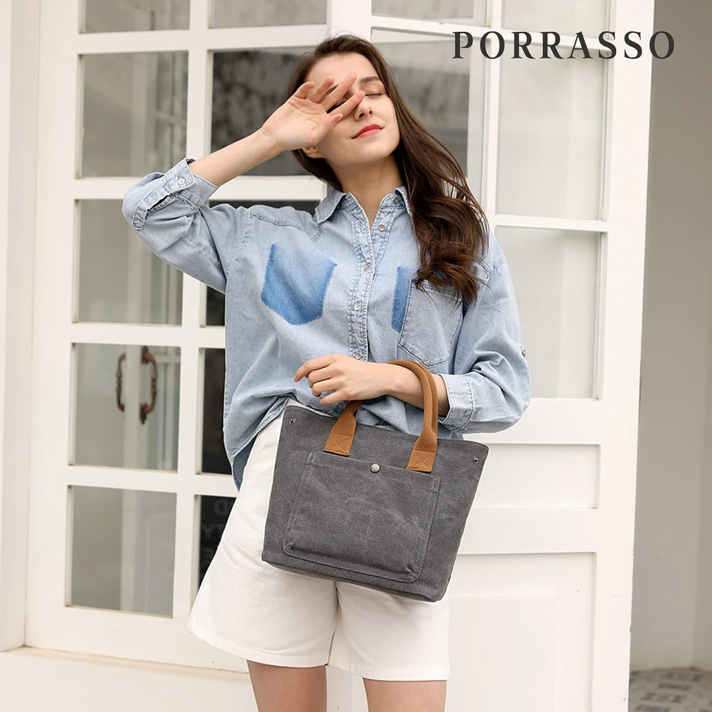 PORRASSO Segeltuch Handtasche Damen Tote Bag Frauen Henkeltaschen für Datieren Arbeit Täglicher Gebr