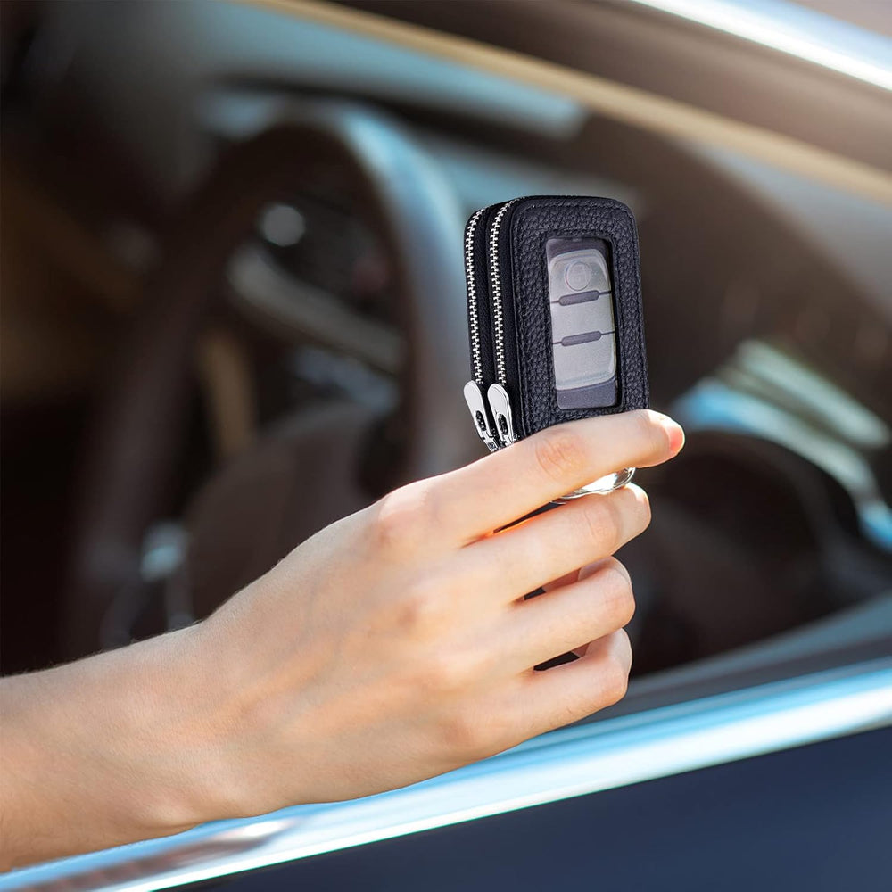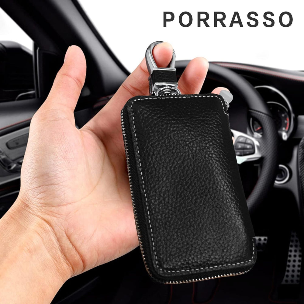 PORRASSO Schlüsseletui Leder Autoschlüsseltasche Schlüsseltasche Doppelter Reissverschluss Schlüssel