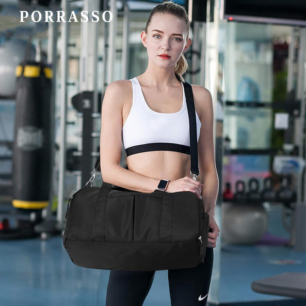 PORRASSO Sporttasche Damen Reisetasche Gross Trainingstasche Schwimmtasche mit Schuhfach Nassfach Fi