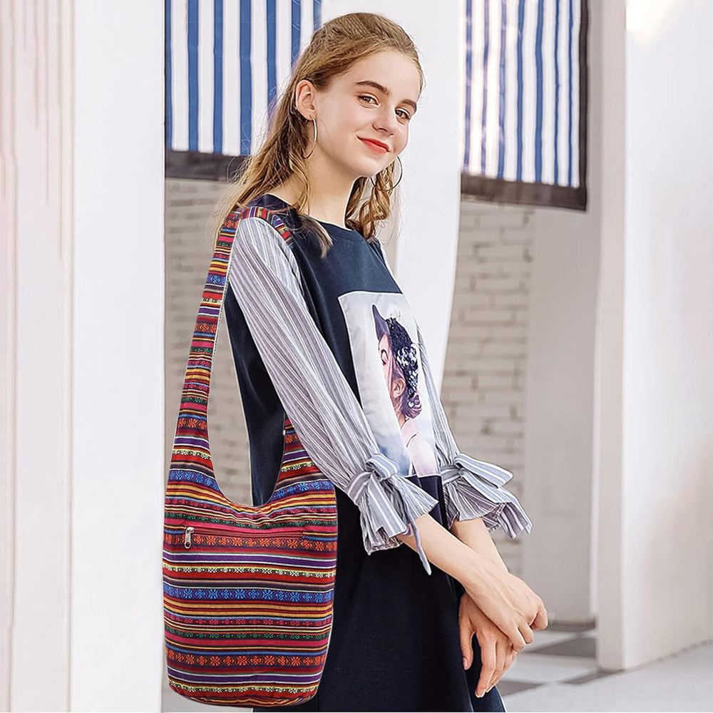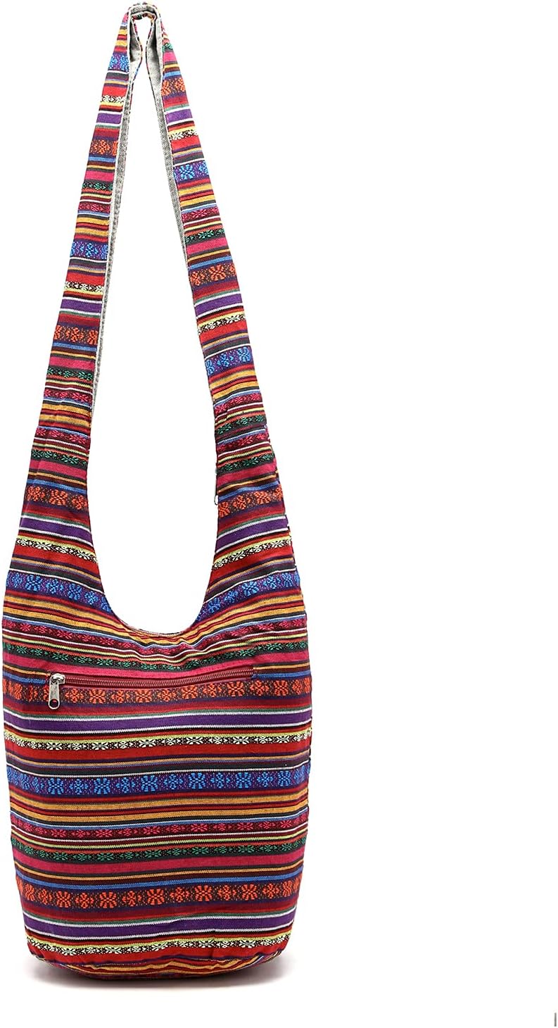 PORRASSO Schulterbeutel Damen Umhängetasche Leicht Schultertasche Hippie Baumwoll-Tasche für Reise S