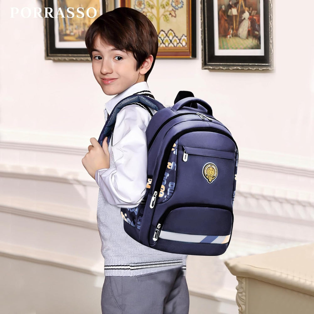PORRASSO Schulrucksack Jungen Rucksack Schüler Daypack Ergonomischen Kinder Rucksäcke Reflektierende