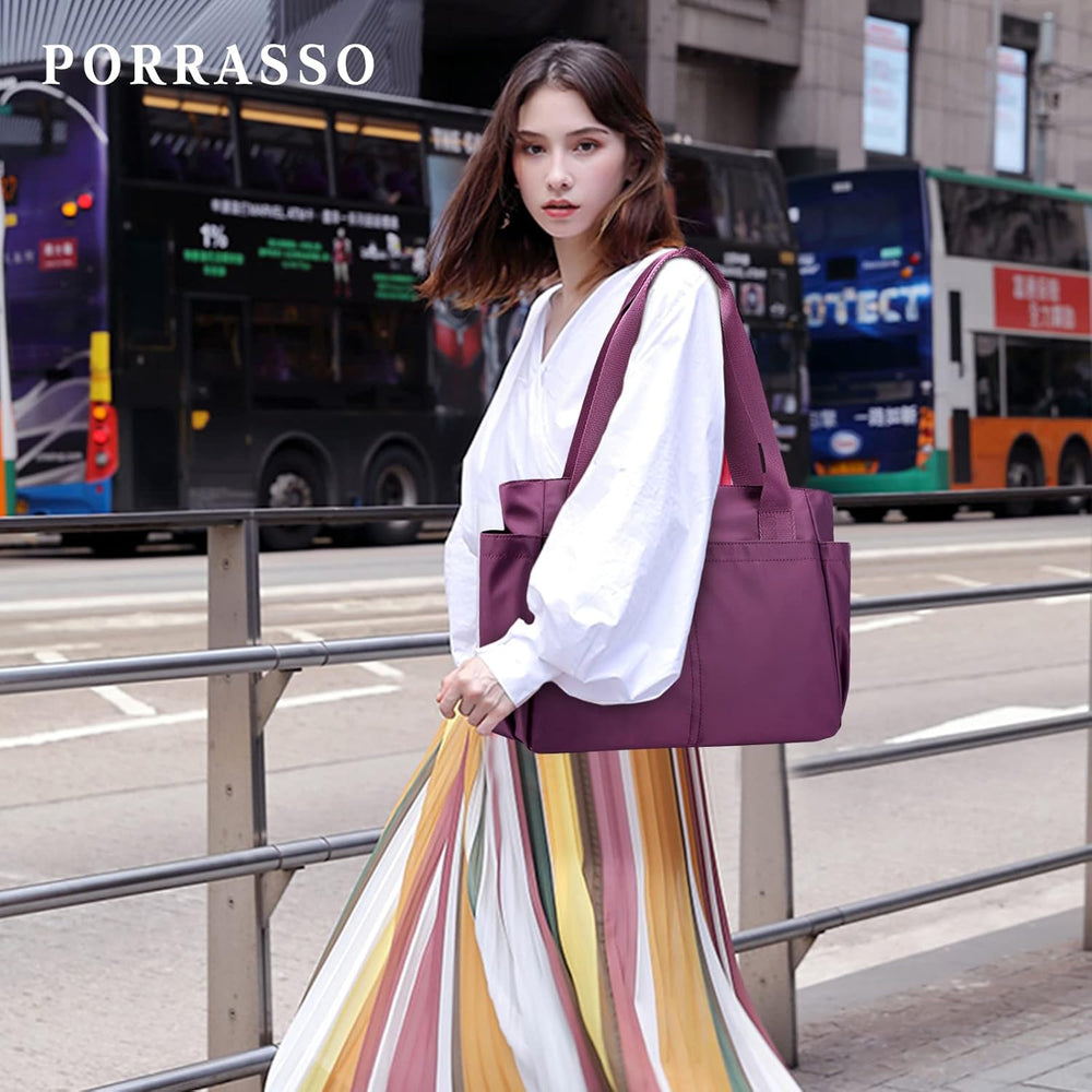 PORRASSO Schultertasche Nylon Handtasche Damen Hobotasche Tote Shopper Henkeltasche für Schule Reise