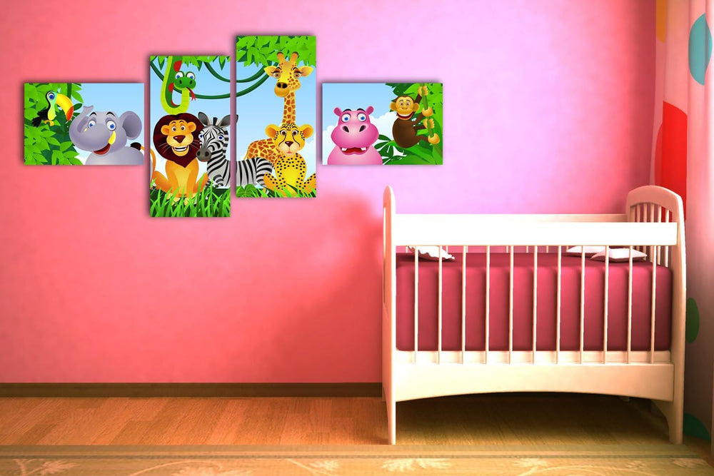 wandmotiv24 Leinwandbild Animal Group LW404 Wandbild, Bild auf Leinwand, 4 Teile, 100x45cm, Kunstdru