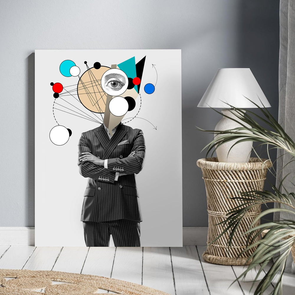 wandmotiv24 Leinwandbild Digital Art, 60x45cm, Hochformat, Anzug, Auge, Deko, Bilder auf Leinwand, W