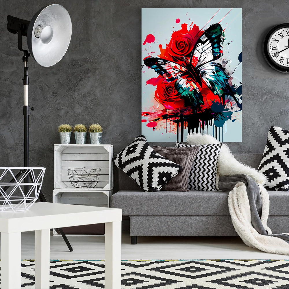 wandmotiv24 Leinwandbild Digital Art, 60x45cm, Hochformat, Schmetterling, Rosen, Deko, Bilder auf Le