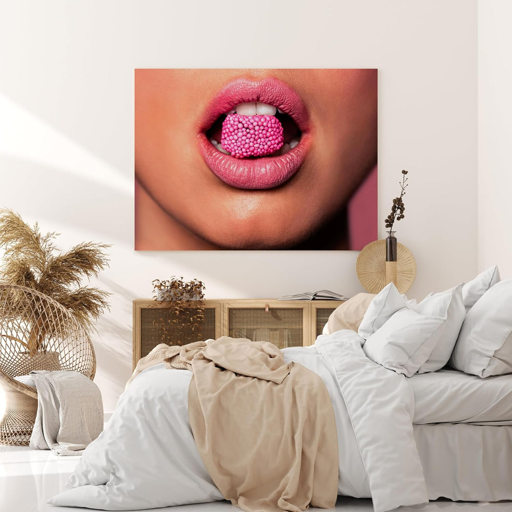 wandmotiv24 Leinwandbild 260 g/m² - Kunstdruck auf Leinwand - Wandkunst - Wandbild mit Frauen Lippen