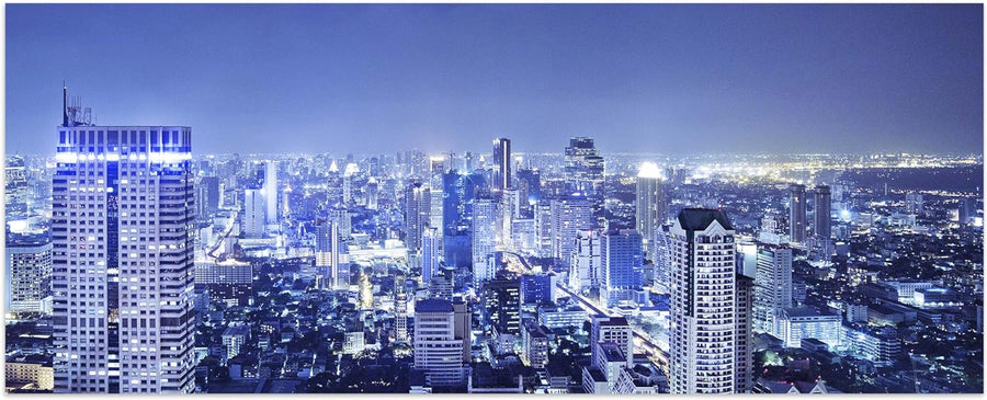 wandmotiv24 Leinwandbild Bangkok bei Nacht 100x40cm (BxH) Bilder auf Leinwand, Dekoration Wohnung mo
