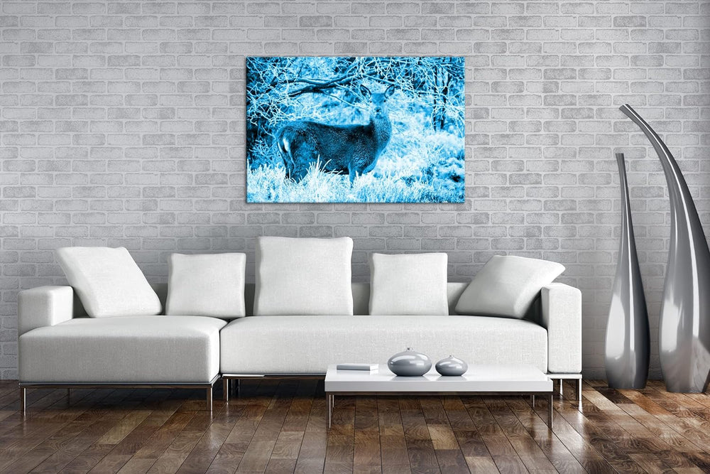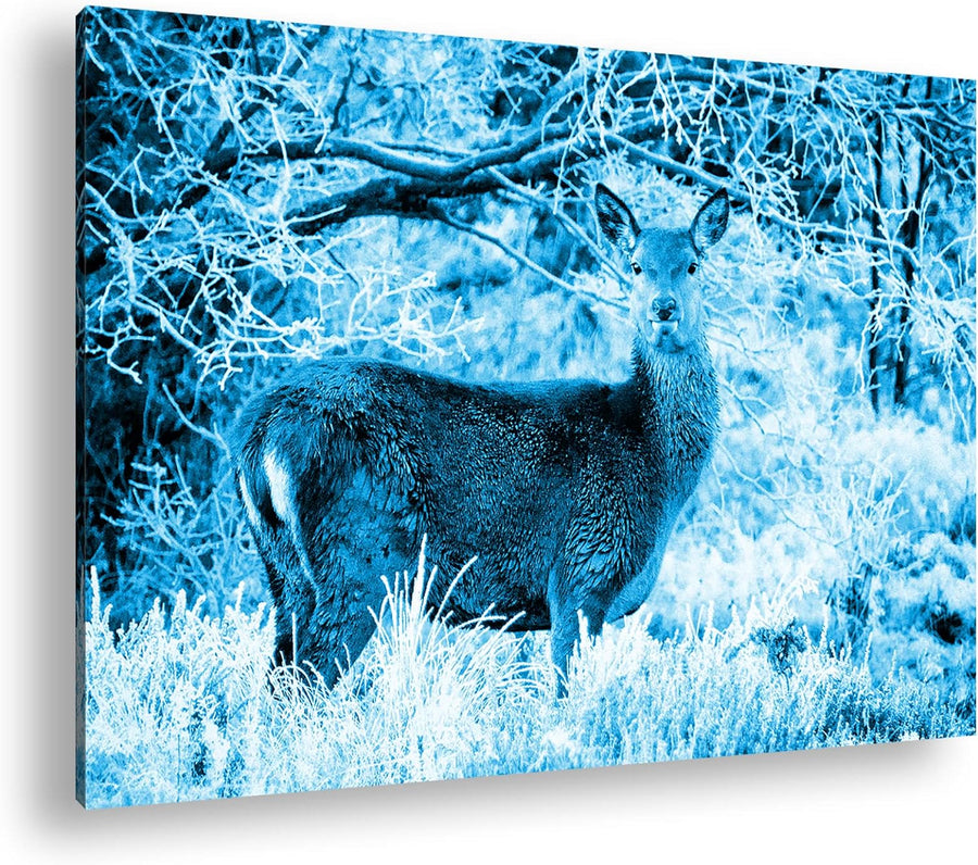 deyoli Reh in Winterlandschaft Format: 80x60 Effekt: Monocrome Blau als Leinwandbild, Motiv fertig g