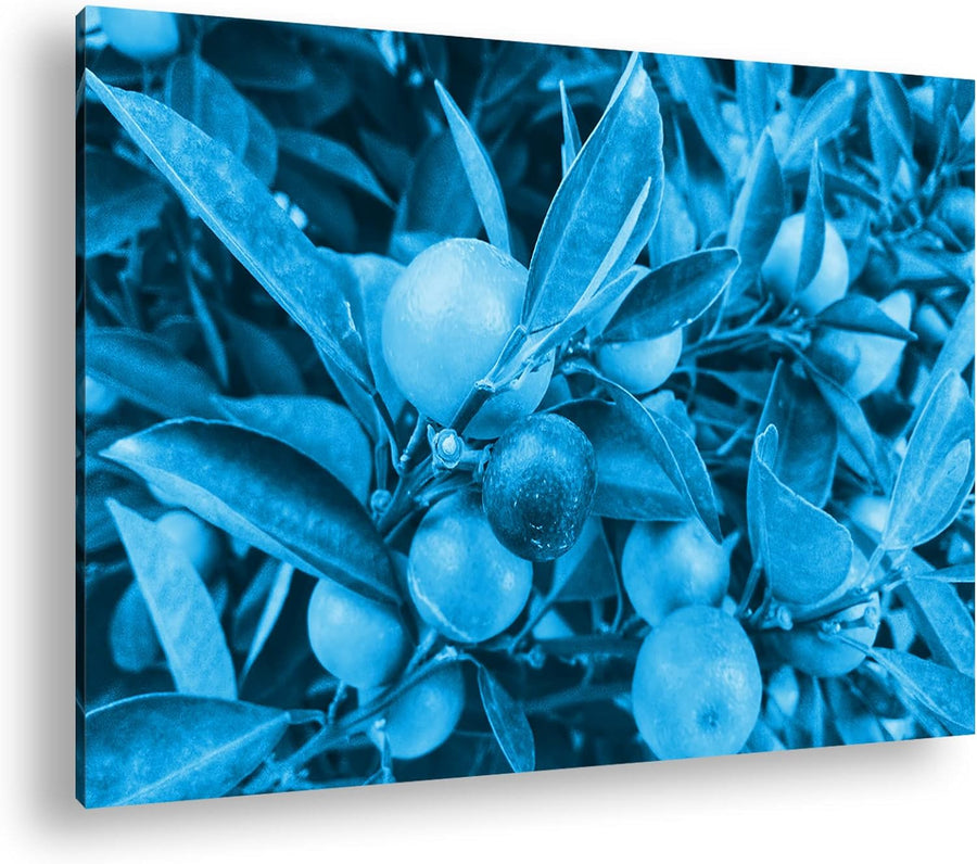 deyoli Reife Zitronen am Baum Format 80x60 Effekt: Monocrome Blau als Leinwandbild, Motiv fertig ger