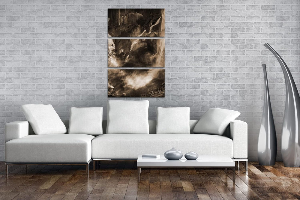 deyoli Regenbogen am Wasserfall Format: 3Teilig Effekt: Sepia als Leinwandbild, Motiv fertig gerahmt
