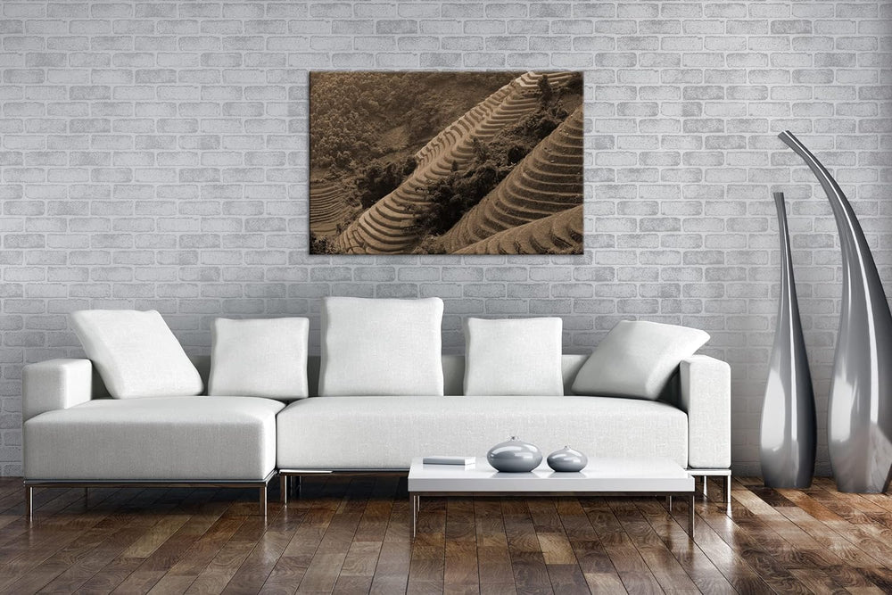 deyoli Reis Terrassen in Vietnam Format: 80x60 Effekt: Sepia als Leinwandbild, Motiv fertig gerahmt